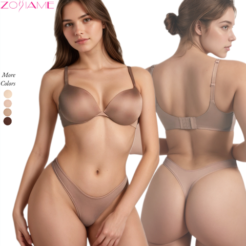 Sujetador de paneles laterales lisos de realce de copa moldeada de fondo grueso sin costuras para mujer